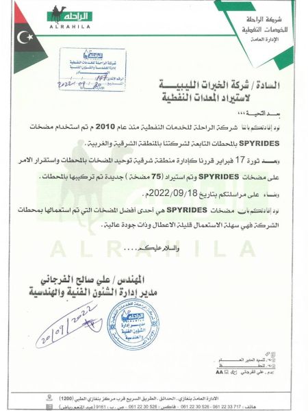- الخبرات الليبية..الوكيل الحصري لشركة Spyrides اليونانية